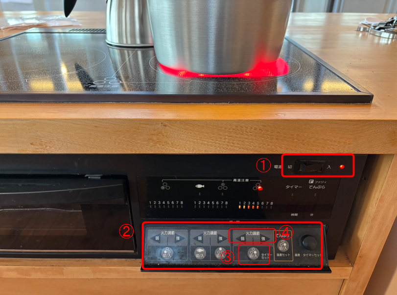 ③使用したい箇所のボタンを長押ししてヒーターの電源を入れる