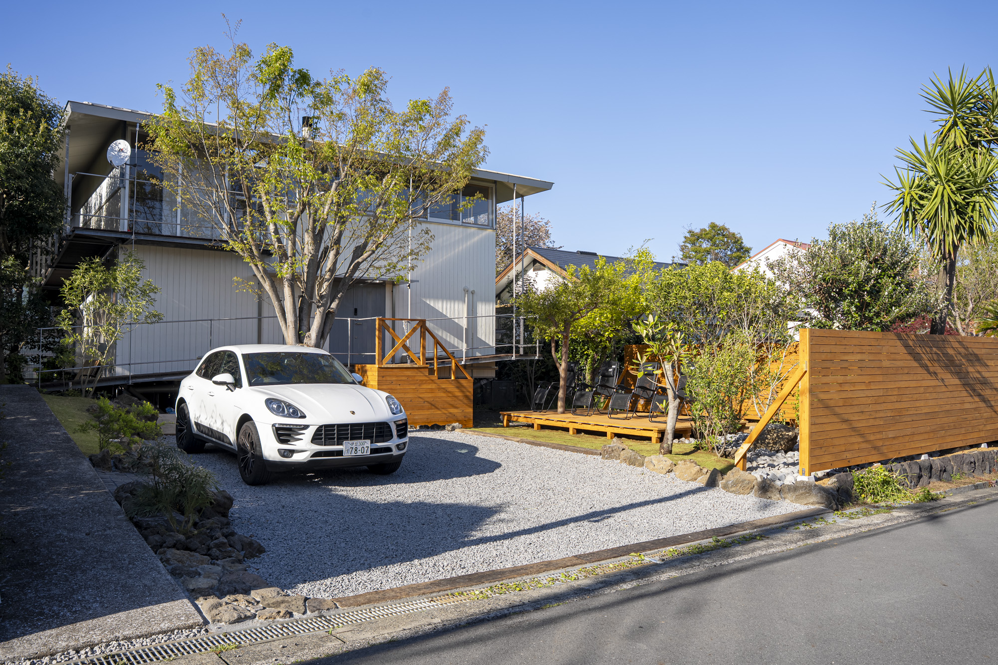 3台~4台分の駐車スペースがります。軽~普通車(フィットやマーチのようなサイズ)であれば4台駐車可能です。1台でも大きめの車があると3台までとなります。