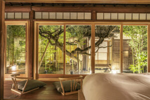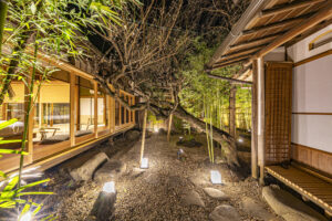 あたたかい光が灯る中庭を眺めてのんびりとくつろぐ時間をお楽しみください。