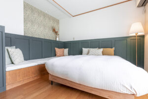 The interior of Garden Terrace Izu Kogen is finished in a Scandinavian style with a clean white base color. You can also cook with a different mood in the turquoise-colored kitchen, which has been carefully designed. Please spend a healing moment in the refined interior space.