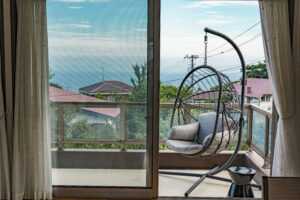 The location overlooks the Izu Sea and Mt. Omuro. BBQ stove is available on the terrace.