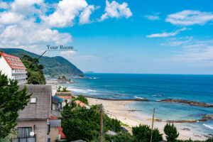 One minute walk to Shirahama Central Beach. This is a corner room in a resort condominium where you can enjoy the panoramic blue ocean view from the room. There is also a communal hot spring bath in the condominium. wifi is available, making it ideal for teleworking. Why not experience resort living at a reasonable price with your family or friends?