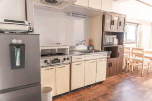 The carefully designed interior has a somewhat chic, retro Western-style atmosphere. In the living room, you can watch the latest video streaming services on a super-large 150-inch screen. The speakers are 5.1ch surround speakers. You can enjoy movies and music with cinema-quality sound.