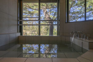 同時に5~6人が入浴可能な温泉は当宿の一番の魅力。好きな時に何度でも、心行くまでお楽しみください。