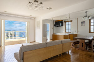 高台に位置しており、海を見渡せる立地です。朝は静けさの中で光あふれる様子、夕暮れ時には空が染まる絶景を、どうぞごゆっくりお楽しみください。