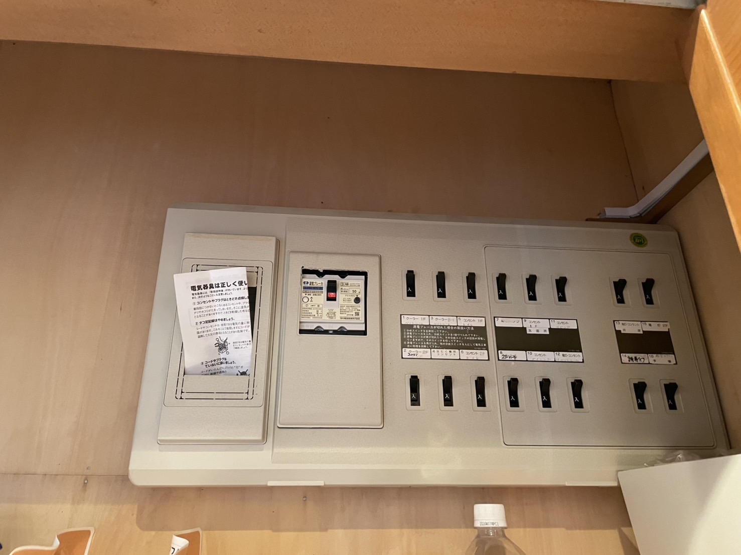 - ブレーカーの位置を確認し、扉を開けて電気配電盤を確認してください。