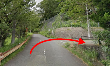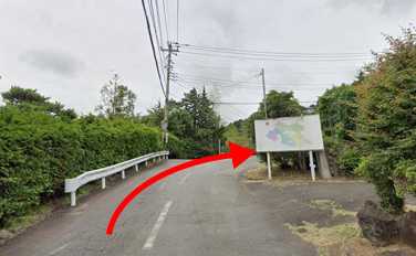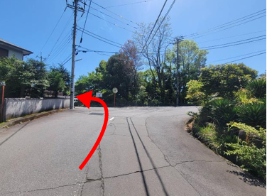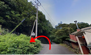 2️⃣道なりに進み、写真の分岐で左折し、そのまま進むと右手に宿があります。