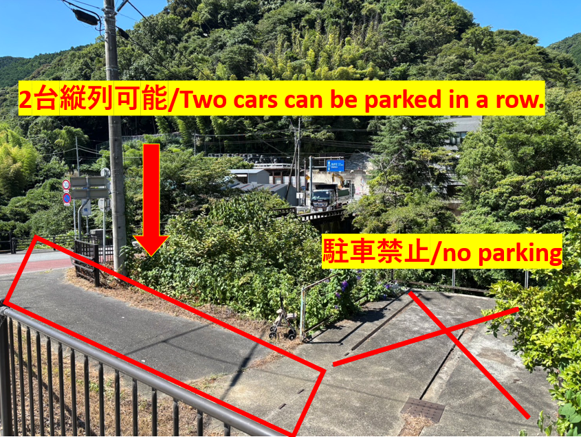 画像の枠内に2台まで縦列駐車が可能です。✕の箇所は駐車禁止です。