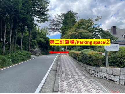 Две-три машины могут быть припаркованы в месте, обозначенном красной рамкой на картинке ниже. (Пожалуйста, остановитесь слева).