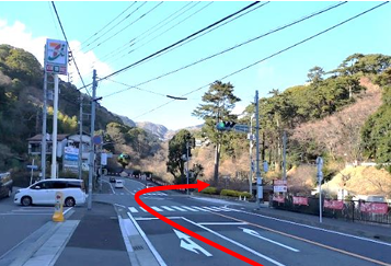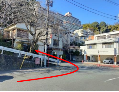 1️⃣来宮駅より熱海梅園方面に進み、「梅園前」の交差点で右折します。